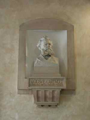 ELEMENTO ORNAMENTALE (esterno) Fascia basamentale a bugnato sui prospetti lungo la pubblica via. Al primo piano fori architettonici rettangolari incorniciati da edicole modanate in pietra bianca, timpani triangolari in corrispondenza della porzione centrale della facciata principale, architravi orizzontali modanati in corrispondenza degli altri fori. Fascia marcapiano a livello del davanzale delle finestre del secondo piano, incorniciate da elementi modanati in pietra bianca, con mensole a voluta a sostegno del davanzale. Coronamento a livello della linea di gronda, con fregio decorato da motivi geometrici e modanatura a dentelli posta a correre lungo il filo della banchina. ELEMENTO ORNAMENTALE (interno) Nell'atrio di ingresso, busto raffigurante Giosuè Carducci e riportante alla base la seguente diciture: "A GIOSUE' CARDUCCI, la scuola nell'anno della fondazione MCMXXII ELEMENTO ORNAMENTALE (interno) Nell'atrio di ingresso, lapide con profilo di Dante Alighieri con inscrizione riportante la seguente dicitura: "O MAGNO SPIRITO VEGLIA SU NOI ALUNNE, MCMXI" ELEMENTO ORNAMENTALE (interno) Mensole a voluta in pietra di Aurisina in corrispondenza del primo piano del vano scala, un tempo necessarie al sostegno dei corpi illuminanti. LAPIDE (interno) Al primo piano, in corrispondenza del salone centrale, lapide commemorativa in pietra di Aurisina, riportante la seguente dicitura: "DEI CADUTI PER L'ITALIA L'OPERA NOSTRA PERPETUI LA VIRTU' LA FEDE LA GLORIA". ELEMENTI ORNAMENTALI (interno) Mosaico paleocristiano di estese dimensioni sul pavimento della navata della basilica paleocristiana posta al di sotto del piano stradale.