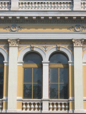 ELEMENTI ORNAMENTALI (esterno): Rilievi in pietra con motivi vegetali in corrispondenza delle specchiature superiori delle torrette e al di sotto dello sporto di linda. BALCONE (esterno): Balcone con parapetto a balaustre in pietra.