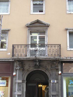 BALAUSTRA (esterno): Balaustra in ferro battuto decorata da motivi geometrici LESENE (esterno): Lesene scanalate con mensole a livello del portale d'ingresso