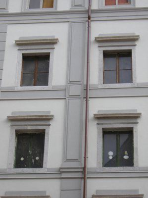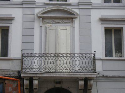ELEMENTI ORNAMENTALI (esterno): Trabeazione decorata da motivi a festone in corrispondenza della portafinestra del primo piano BALAUSTRA (esterno): Balaustra in ferro battuto LESENE (esterno): Lesene lisce e a bugnato ad intonaco grigio