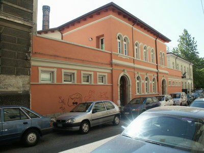 L'edificio degli ex bagni pubblici, oggi completamente restaurato ed ospitante un asilo nido collegato all'attigua scuola materna sita al civico 12-14, risale alla fine del XIX secolo allorquando si sentì forte la necessità di provvedere affinché anche i meno abbienti avessero la possibilità di "procurarsi bagni, in vasca o a doccia a equo prezzo". Inaugurato il 22 agosto del 1898 lo stabilimento, sorto per iniziativa benefica di una Società senza altro scopo se non quello di favorire appunto la pubblica igiene tra i ceti meno fortunati, fu chiuso durante il primo conflitto mondiale a causa della mancanza d'acqua. Fu riattivato solo nel 1919. Nel 1922 l'edificio passò in gestione al Comune che ne regolamentò l'amministrazione sottoponendolo al controllo della ragioneria municipale fino alla sua definitiva chiusura e trasformazione d'utilizzo.
