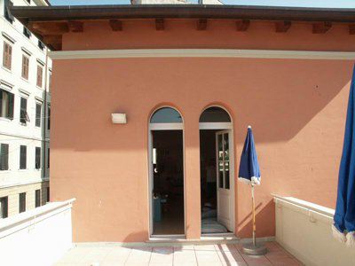 ELEMENTO ORNAMENTALE (esterno) In corrispondenza del corpo in aggetto del fronte principale, sono presenti fori architettonici con cornici in pietra bianca e finte edicole ad arco trattate ad intonaco con paraste laterali; sui fori al piano terra sono posti conci di chiave uniti da una fascia marcapiano posta a correre lungo l'intera facciata; a coronamento della facciata, al di sotto della quota d'imposta dei puntoni della copertura, è posta una sottile modanatura a correre.