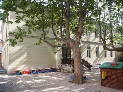 Nel 1884, in occasione del matrimonio del principe ereditario Arciduca Rodolfo, il Consiglio cittadino deliberò di stanziare la somma di 20.000 fiorini da destinarsi alla costruzione di un asilo infantile nella zona di Chiadino sul fondo tavolare N.382 di proprietà del Comune fronteggiante un'androna in continuazione di via Manzoni. Il fondo, che avrebbe dovuto comprendere tanto la costruzione dell'edificio quanto quella di un giardino per un totale di 1520 mq, veniva così a trovarsi tra le Sale di Lavoro per fanciulli abbandonati e la Pia Casa dei Poveri. L'inaugurazione del nuovo Giardino d'Infanzia intitolato all'Arciduca Rodolfo avvenne il 20 ottobre 1884. La cifra iniziale fu ben presto superata tanto da raggiungere la spesa complessiva di 29.461 fiorini. La costruzione comprendeva due livelli: al piano inferiore trovarono posto tre stanze didattiche, la cancelleria e, come era allora consuetudine, l'alloggio per la dirigente, al piano superiore furono invece previste una palestra, un refettorio, un'ulteriore stanza scolastica ed una cucina con annessa dispensa. Nel 1884 a soli tre mesi dall'apertura a causa di un'epidemia di vaiolo l'asilo fu trasformato in ospedale. Il 1 aprile dell'anno seguente fu riaperto al pubblico, ma otto mesi più tardi chiuso di nuovo per l'imperversare di una grave epidemia di colera, fatto questo che costrinse il Comune a destinare l'edificio scolastico a "casa di osservazione" per le famiglie colpite dalla malattia. L'8 gennaio del 1887 il Magistrato Civico decretò la riapertura dell'asilo. Oggi la scuola, completamente restaurata e rinnovata nei suoi interni, è divisa in due strutture distinte: la scuola materna, nell'edificio del fu asilo Arciduca Rodolfo (sita al civico n.14) e l'asilo nido nell'edificio attiguo (al civico n.10 e 12) di proprietà del Comune sin dalla sua originaria destinazione come bagno pubblico. I dati catastali-tavolari riportati nella presente scheda sono riferiti al piano presentato nel corso dell'anno 2005, in corso di approvazione alla data dell'inserimento.