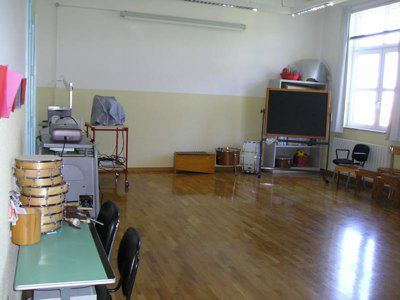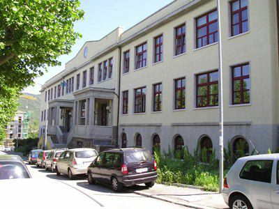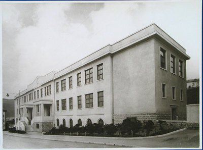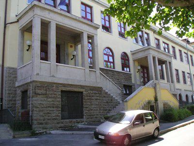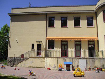 L'edificio è ubicato sulla collina di San Luigi, con l'affaccio principale su via Carlo Archi ed in prossimità di un boschetto. L'edificio, con pianta a forma rettangolare, presenta un piano interrato, due piani fuori terra ed un attico; sul fronte principale è posta una scalinata a doppia rampa. La struttura portante è in calcestruzzo armato e laterizio; i solai sono in latero-cemento. La copertura è a terrazzo con rivestimento in guaina bituminosa. Grondaie e pluviali sono in rame. L'edificio presenta lungo il perimetro una fascia di basamento in pietra bugnata; al di sopra e fino all'altezza del primo solaio si estende un rivestimento in pietra artificiale. I livelli superiori sono rivestiti da intonaco liscio di colore giallo. La cornice del tetto è in muratura ed è integrata al parapetto del terrazzo. Nella parte centrale della facciata, il parapetto forma un timpano nel quale è inserito il quadrante di un orologio (P1010128.jpg). I fori finestra sono ad arco a tutto sesto lungo il piano seminterrato, rettangolari ai piani superiori. L'atrio d'ingresso, preceduto da una breve scalinata in pietra, introduce al corridoio del primo piano ed ai vani scala (P1010037.jpg). Le aule sono disposte lungo la facciata principale, i vani di servizio sul lato opposto.