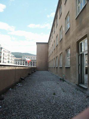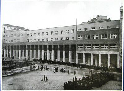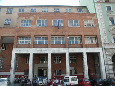 Fabbricato appartenente al comprensorio di Piazza Oberdan e Foro Ulpiano, progettato nel corso degli anni Trenta. Composizione stereometrica di due solidi parzialmente compenetrati e connotati da un ampio porticato posto in prospettiva del palazzo del tribunale. Suddivisione in tre parti del prospetto principale lungo la Via Giustiniano; una fascia basamentale rivestita in pietra bianca, una fascia centrale rivestita in laterizio, una fascia superiore arretrata rispetto al filo esterno del porticato trattata ad intonaco. Strutture portanti verticali e scale interne in calcestruzzo armato, solai di interpiano e di copertura in laterocemento; copertura piana.