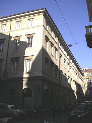 Il fabbricato, in stile neoclassico, fu edificato nel 1827 su progetto dell'architetto Antonio Buttazzoni datato 28 ottobre 1827 (ACT_332). Con questa costruzione l'architetto si trovò nella difficoltà di dover costruire un'edificio di tre piani su un'area molto stretta. L'area sulla quale venne realizzato questo edificio era denominata "isola Chiozza", dal nome dell'industriale Carlo Luigi Chiozza, che in questa zona della città aveva fatto costruire una dozzina di case. L'immobile del Buttazzoni è l'unico che rimane dell'"isola Chiozza", poiché gli altri edifici dell'area furono demoliti nel primo decennio del XX secolo, a seguito del riassetto urbanistico della zona. L'immobile fu oggetto di successivi interventi. All'architetto Francesco Catolla, si deve la modifica della facciata su via Crispi e la sopraelevazione del terzo piano e della soffitta nel 1854. Altre modifiche alle facciate si susseguirono tra il 1873 e il 1952, in particolare il prospetto su viale XX Settembre fu quasi demolito durante la costruzione dell'attiguo palazzo del cinema Excelsior. Il pianoterra è stato ristrutturato negli anni Ottanta per ospitare gli uffici della SIP. Il provvedimento di vincolo è da intendersi limitatamente alle facciate sulla pubblica via.