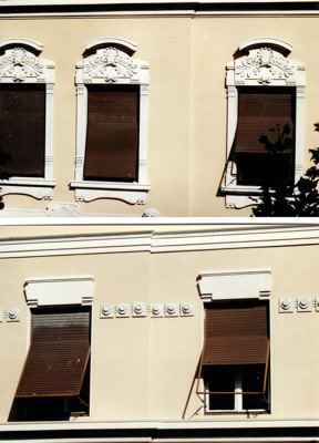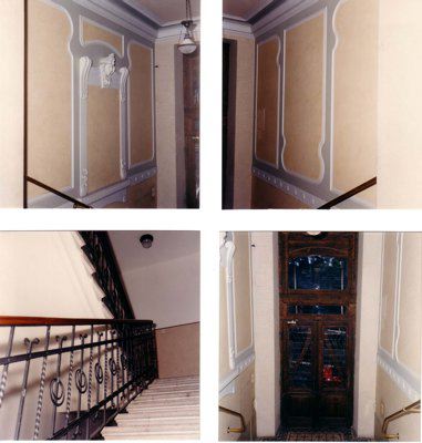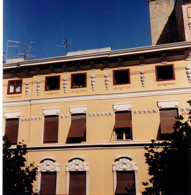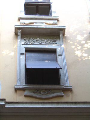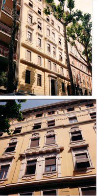 ELEMENTI ORNAMENTALI (esterno) Motivi decorativi di stile liberty con elementi geometrici e floreali ornano le aperture delle finestre e il portale d'ingresso. Fregi con decorazioni geometriche riempiono gli spazi tra le aperture degli ultimi due livelli. ISCRIZIONE (esterno) Sull'architrave del portale d'ingresso è scolpita la data in caratteri romani "MCMV", che corrisponde all'anno di costruzione dell'immobile.