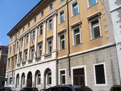 L'edificio, in stile neoclassico, è composto da pianoterra e tre piani superiori. Il prospetto principale, che si affaccia sulle rive, è caratterizzato da un corpo centrale in aggetto con una serie di arcate in bugnato liscio che sorreggono una balaustra in pietra, sulla quale si impostano sei semicolonne ioniche, comprendenti primo e secondo piano. Al di sopra del colonnato si imposta una balconata a colonnine in pietra. Le altre due facciate dell'edificio ripetono il motivo dell'ordine gigante del prospetto su riva Nazario Sauro, ma le semicolonne sono sostituite da lesene ioniche. La facciata su via dell'Annunziata è contraddistinta da un balcone centrale. Tutte le finestre del piano nobile sono architravate. Una cornice a dentelli conclude le facciate sotto lo sporto di linda, sostenuto da mensoline. Sul tetto, in posizione centrale rispetto alla facciata principale, si erge una torretta con cupola.