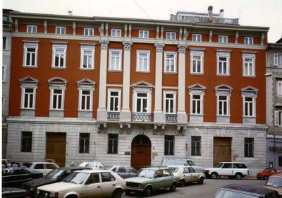 L'edificio venne fatto costruire nel 1821 da Leopoldo Mauroner, comandante della milizia territoriale e proprietario del teatro Mauroner. Il progetto è dell'architetto Matteo Pertsch. La sopraelevazione del mezzanino e le modifiche alle decorazioni della facciata si devono all'intervento di Antonio Somazzi nel 1876. Al 1923 risale un'ulteriore sopraelevazione parziale. Tra il 1986 e il 1987 l'immobile è stato interessato da lavori di restauro alla facciata principale e alla copertura. Nel 1823 Leopardo Mauroner affittò il palazzo al vescovo di Trieste Antonio Leonardis, che vi stabilì temporaneamente la sede vescovile e vi morì nel 1830. Nel 1854 l'immobile venne acquistato dal negoziante Alessandro Covacevich, capo della comunità greco-ortodossa; in seguito lo ereditò il figlio Giovanni che ne fu proprietario fino al 1911. Nel 1918 divenne la sede della società di esportazione di cemento Portland-Trieste. Infine, il palazzo divenne proprietà della famiglia Stock.