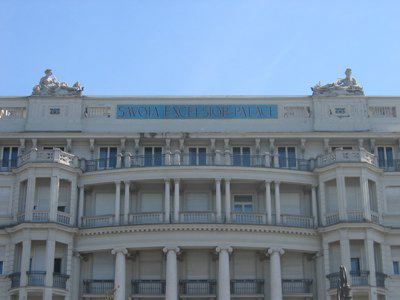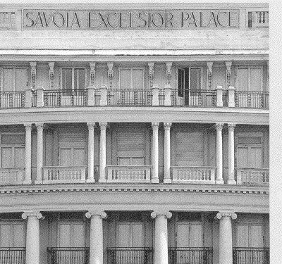BALCONE (esterno): Balconi con parapetti in pietra o in ferro battuto a decorazione dei quattro prospetti dell'edificio. COLONNE (esterno): Colonne di ordine dorico con trabeazione classica a ritmare il pianoterra vetrato del prospetto principale. COLONNE (esterno): Colonne ioniche di ordine gigante in corrispondenza del terzo e quarto livello fuori terra della superficie centrale del prospetto principale. SCULTURE (esterno): Sculture raffiguranti putti che sostengono uno stemma in corrispondenza degli angoli al di sotto dello sporto di linda. SCULTURE (esterno): Sculture raffiguranti due figure, la Città di Trieste e Nettuno, collocate alla sommità del prospetto principale. FREGIO (estrerno): Fregio a mosaico riproducente la scritta "Savoia Excelsior Palace" di colore nero su fondo blu in corrispondenza del parapetto alla sommità del prospetto principale. MENSOLE (esterno): Mensoloni in pietra decorati da motivi floreali a sostegno dello sporto di linda.