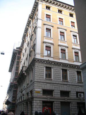 L'edificio fu costruito nel 1906 su progetto dell' ingegner Bachschied. Nel provvedimento di vincolo redatto dalla Soprintendenza viene decritto come edificio di buona architettura, misto di forme rinascimentali e secessioniste che, oltre al particolare interesse in sé, presenta interesse ambientale a salvaguardia del complesso monumentale di San Antonio Taumaturgo, Chiesa di San Spiridione e Canal Grande.