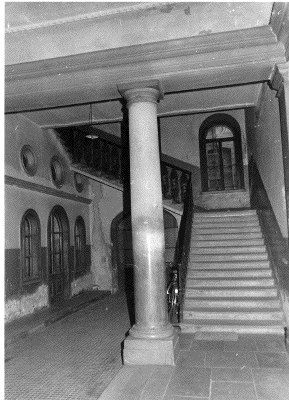 LESENE (esterno): Lesene scanalate e lisce ai del portale centrale e del prospetto principale. BALCONE (esterno): Balcone con parapetto a balaustre in pietra nella parte centrale del primo piano del prospetto principale. PANDURO (esterno): Panduro raffigurante un volto umano in corrispondenza della chiave di volta dell'arco del portale del prospetto principale. MENSOLE (esterno): Mensole a voluta a sostegno del balcone centrale del prospetto principale. CORNICE (esterno): Cornice a dentelli a coronamento del prospetto principale.