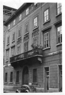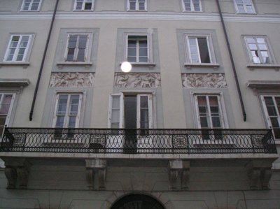 In questo edificio neoclassico, costruito nel 1823 su progetto di Matteo Pertsch, troviamo il motivo caro a lui caro di ornamenti a bassorilievo presente in numerose sue opere, e per il quale egli stesso si interessava contattando direttamente scultori e scalpellini. Nel 1952 sono state operate delle modifiche alla facciata al pianterreno.