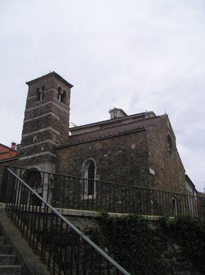 LAPIDE (esterno) Lapide posta dai Gesuiti nel 1672 recitante " TERGESTVM SS. EVPHEMIAE ET THECLAE NOBIL, VV. ET MM. TERGESTIN. DOMICILIVM PRIMVM TEMPLVM ET CATHEDRALE IMMACVLATAE VIRG. ORATORIVM RESTAVRATVM M.D.C.L.XXII." AFFRESCO (interno) Frammenti di pitture ad affresco trecentesche raffiguranti una scena relativa alla vita dell'imperatore Costantino e una probabile Annunciazione. ROSONE (esterno) Rosone con raggiera ad archi a tutto sesto sulla facciata principale. COLONNE (interno) Colonne in pietra con capitello cubico suddividono le navate interne. PROTIRO (esterno) Protiro romanico in pietra bianca con colonne a sostegno dell'arco a tutto sesto.