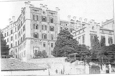 L'Ospedale militare fu costruito tra il 1856 e il 1862 su progetto dell'ingegnere Luigi Buzzi. L'immobile fu edificato su un fondo, sulle pendici del colle di Scorcola, che il Comune aveva acquistato nel 1856 da Francesco Guetta, e che cedette gratuitamente al Sovrano Erario per la costruzione del nuovo ospedale. L'edificio andava a sostituire il primo ospedale militare, costruito nel 1790, e annesso alla Caserma grande. Il complesso, realizzato nello stile romantico del gotico quadrato, si compone di una palazzina destinata agli uffici amministrativi e di un retrostante edificio con pianta ad H con capacità di accogliere fino a 500 posti letto. L'edificio sorse espressamente quale ospedale militare, ma un'ala del complesso ospitò la Scuola dei Cadetti di Fanteria dal 1859 al 1872. L'ospedale, che durante il periodo dell'Adriatisches Küstenland venne utilizzato dalle forze armate tedesche, rimase in attività fino al 1988. Attualmente è inutilizzato.