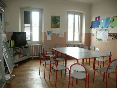 ELEMENTI ORNAMENTALI (esterno) Paraste, marcapiani, edicole ed altri elementi modanati in pietra o in intonaco scandiscono le facciate e mettono in evidenza gli elementi architettonici fondamentali. ELEMENTI ORNAMENTALI (esterno) Mensole in pietra bianca con decorazioni a voluta sostengono il balcone al primo piano del corpo principale. ELEMENTI ORNAMENTALI (esterno) Inferriate in ferro battuto decorano con motivi geometrici e floreali i sopraluce delle aperture al piano terra e la balaustra del balcone del primo piano del fabbricato principale. LAPIDE (interno) Nell'atrio di ingresso principale una lapide in pietra carsica riporta la seguente dicitura: "DOTT. GIORDANO CALLEGARI, EX ALLIEVO E BENEFATTORE, CON GRATITUDINE GLI ALLIEVI DEL RICREATORIO G. BRUNNER" BUSTO (interno) Nell'atrio di ingresso principale un busto bronzeo è dedicato a Guido Tamburlini.