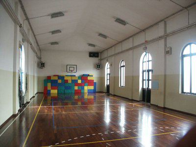 CORPO EDILIZIO PRINCIPALE Un abbassamento in intonaco grezzo protegge l'intonaco liscio di facciata dipinto in color rosso porpora. La facciata principale presenta al piano terra un finto bugnato liscio; paraste lisce rifinite ad intonaco suddividono la facciata in tre parti, mettendo in evidenza la porzione centrale, sovrastata dall'attico; un imponente marcapiano modanato rifinito ad intonaco mette in risalto la ripartizione orizzontale alla quota del solaio del primo piano; il coronamento modanato rifinito ad intonaco si collega senza soluzioni di continuità alla banchina; le lattonerie sono in lamiera verniciata color testa di moro e il manto di copertura si presenta in coppi curvi rossi uso Trieste. I fori architettonici del piano terra, disposti simmetricamente sulla facciata e tutti arcuati, sono collegati a livello dell'architrave da una modanatura ad intonaco posta a correre sulla lunghezza dell'intera facciata; i serramenti vetrati in PVC bianco presentano degli oscuranti metallici esterni verniciati color testa di moro e un sopraluce vetrato protetto da un'inferriata in ferro battuto decorato; la porta lignea a doppia anta di ingresso principale, presenta anch'essa un sopraluce e due specchiature vetrate, protette da inferriate in ferro battuto. I fori architettonici al primo piano, di forma rettangolare e di dimensioni costanti, sono messi in risalto da edicole in pietra bianca con architrave modanato, gocciolatoio sorretto da piccole mensole a voluta e specchiatura trattata ad intonaco bianco posta al di sotto della linea del davanzale, a sua volta messa in evidenza da una modanatura in intonaco posta a correre lungo l'intera dimensione della facciata; i serramenti in PVC a due ante a quattro specchiature con finta inglesina presentano oscuranti esterni ad anta in PVC color testa di moro, ad imitazione degli oscuranti uso Trieste; un balcone in pietra sorretto da quattro mensole decorate a voluta copre la larghezza dei tre fori architettonici centrali e presenta una balaustra in ferro battuto decorato; il foro centrale di porta-finestra di accesso al balcone è messo in evidenza da un timpano triangolare modanato. L'attico presenta tre fori finestra protetti da oscuranti esterni in PVC color testa di moro. I prospetti secondari sono trattati in maniera omogenea ma meno ricca di quello principale, con fori architettonici di dimensioni minori, soprattutto in corrispondenza dei servizi. La pavimentazione in battuto di graniglia e cemento copre tutte le superfici di calpestio del piano terra, mentre al primo piano gli spazi comuni sono pavimentati in marmette di graniglia cemento e le aule presentano un parquet ligneo disposto a spina di pesce. La scala con gradini in pietra bianca bulinata è protetta da una balaustra in ferro battuto decorato con corrimano ligneo. I paramenti murari intonacati color bianco mostrano un abbassamento in smalto murale in color rosa antico, mentre i soffitti nascondono le travature lignee a mezzo del tipico intonaco aggrappato su arelle lignee fissate alla struttura. I serramenti interni sono lignei di grandi dimensioni a doppia anta verniciata in color panna, a tre specchiature cieche. CORPO EDILIZIO SECONDARIO Le facciate sono trattate in maniera omogenea sui quattro lati, ad esclusione del maggior numero di fori presenti sull'affaccio nord-ovest, dove ampie porte-finestre archivoltate si alternano a più piccole finestre. Tutti i fori presentano una cornice ad arco ad intonaco modanata con chiave di volta liscia rifinita ad intonaco. Il paramento murario, le cui dimensioni sono scandite a ritmi regolari da paraste in finti conci ad intonaco grezzo, posti in corrispondenza delle strutture verticali in calcestruzzo armato, presentano un tamponamento esterno in laterizio facciavista e un basamento in intonaco grezzo che protegge il paramento murario dagli agenti atmosferici. La banchina trattata ad intonaco supporta lattonerie in lamiera verniciata color testa di moro. Il manto della copertura a falde è composto da coppi curvi rossi uso Trieste.