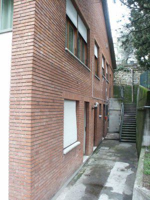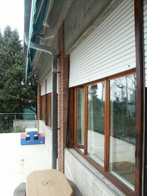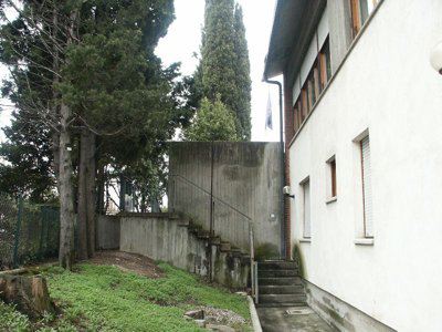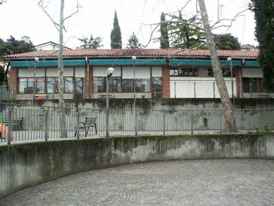 Il fabbricato risulta isolato su un lotto di pertinenza ricavato sul pendio che dal rione di Roiano sale sulle pendici del monte di Scorcola. L'edificio è costruito a ridosso di un pastino al limite nord del lotto; il giardino è ricavato su una serie di terrazzamenti esposti a sud e diversamente pavimentati a seconda dell'uso. Le funzioni scolastiche sono contenute esclusivamente al piano superiore dell'edificio, caratterizzato da ampie vetrate esposte a sud e da paramenti murari esterni in laterizio e calcestruzzo facciavista. Al piano inferiore, accessibile dal lato est e parzialmente seminterrato, si trovano alcuni vani tecnici e l'appartamento del custode. Le strutture portanti verticali e orizzontali sono in calcestruzzo armato, talvolta a vista; la copertura a falde è rivestita da un manto di coppi curvi rossi uso Trieste; sul lato nord una serie di contrafforti in calcestruzzo armato contribuiscono a reggere la spinta del muro in pietra che delimita il pastino del terreno confinante e ricavano uno stretto passaggio su cui si aprono le finestre dei locali di servizio della scuola.