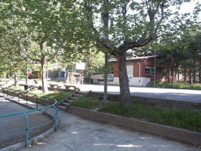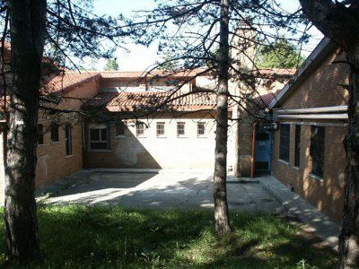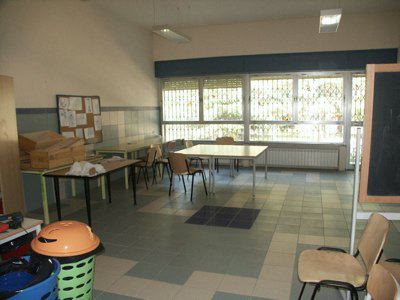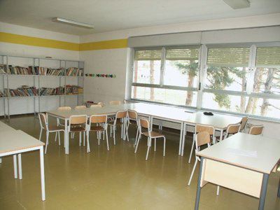 Il fabbricato si colloca nel mezzo di un ampio lotto di pertinenza, posto di poco a nord della piazza centrale di Borgo S. Sergio. L'architettura tipica degli anni sessanta, tendente al razionalismo, si rifà nei materiali utilizzati all'edificato circostante, mostrando in facciata un rivestimento in laterizio accompagnato da ampie porzioni in calcestruzzo armato a vista. La struttura portante è mista in setti e pilastri in calcestruzzo armato, con solai di copertura in laterocemento. La composizione planimetrica si presenta articolata in una serie di corpi edilizi monopiano collegati da un corridoio assiale. I diversi livelli cui sono poste le coperture a falda con manto in coppi curvi rossi, consentono alla luce naturale di illuminare anche le parti più interne dell'edificio scolastico. Ampie finestrature in alluminio consentono un'abbondante illuminazione naturale interna. A nord le sistemazioni esterne sono a verde, mentre a sud si aprono i campi da gioco all'aperto utilizzati soprattutto dal ricreatorio comunale.