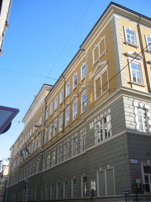 L'edificio fu costruito tra il 1875 e il 1877 su progetto dell'ingegnere Giovanni Righetti. L'immobile fu fatto costruire dalla Banca Triestina di Costruzioni con lo scopo di riunire in un'unica sede tutte le scuole del borgo Giuseppino. L'area sulla quale venne eretto il palazzo delle scuole in precedenza era occupata da due stabili erariali. La prima pietra dell'edificio fu posta l'8 maggio 1875. Nel 1876 iniziarono a funzionare le prime scuole all'interno dell'immobile. A fine Ottocento si trovavano ospitalità nel Palazzo il Ginnasio, la Scuola Reale Superiore e la Scuola Cittadina, con le sezioni maschile e femminile. Fino al 1968 l'edificio ha ospitato il Civico Museo del Mare, successivamente trasferito nell'ex Lazzaretto San Carlo. Attualmente nel palazzo hanno sede l'Istituto Nautico "Tomaso di Savoia Duca di Genova" e l'Istituto Tecnico Commerciale " G. R. Carli".