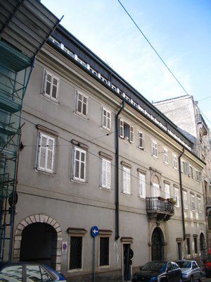 L'immobile, costruito alla fine del XVIII secolo in stile eclettico, si trova in Via Martiri della Libertà, già Via Commerciale Vecchia. La vecchia strada regia, tracciata sul pendio del monte fino ad Opicina, venne aperta nel 1779 per agevolare il trasporto delle merci verso l' Italia e la Germania (Generini). Tutelato principalmente per le caratteristiche architettoniche del prospetto, cui si fa specifico riferimento nel decreto di vincolo, l'immobile viene definito come tipico esempio di edificio del Settecento triestino con funzioni residenziali e commerciali. Il provvedimento di vincolo è limitato alla facciata principale.