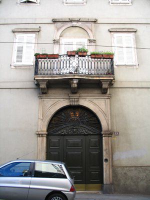 BALCONE (esterno) Balcone con ringhiera in ferro battuto. MENSOLE (esterno) Tre mensole a voluta sostengono il balcone del primo piano.