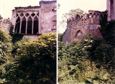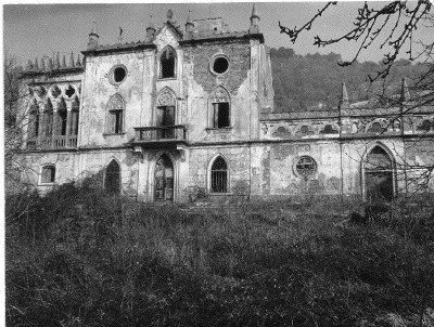 Il complesso in origine era costituito dalla villa, dalle scuderie e da quattro edifici rurali limitati da alte e massicce mura di cinta. La villa, realizzata in stile gotico tardo, poggia su bastioni del Cinquecento in origine merlati. La facciata principale, ripartita in tre zone da lesene, è ornata da finestre gotiche e ad occhio, rosoni in pietra arenaria, quadrifore ad imitazione del gotico fiorito veneziano e pinnacoli squadrati sopra al cornicione. La parte centrale della facciata presenta al piano terra un portale archiacuto, e al primo piano un poggiolo. Al centro del secondo piano c'è una finestra ogivale sormontata da una ghimberga che si eleva sopra al cornicione. Il tetto è crollato in buona parte della costruzione. Nella parte posteriore della costruzione si eleva una torretta belvedere. Il complesso è completato da muraglioni di contenimento a forma di bastioni medievali. All'interno sono distribuite quattordici stanze. Al pianterreno vi è un salone con caratteristico focolare, mentre nella sala con le quadriforme al primo piano si trova un caminetto. I pavimenti di alcune stanze sono realizzati con mattonelle di ceramica dipinte a mano, altri in rustico o mosaico. Sulle pareti rimangono tracce di decorazioni ad affresco e di fregi ornamentali in stucco. Le finestre avevano vetri policromi e piombati.