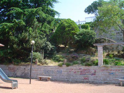 Lo scavo condotto in quest'area, ritenuta esterna alle mura romane repubblicane, ha evidenziato il tracciato di un viottolo. La via era pavimentata con un lastricato di arenaria, che ricopriva una canaletta, ricalcata in tutta la sua lunghezza. Un cordolo di blocchi in arenaria fungeva da marciapiede, mentre strutture conservate in fondazione e piani sottofondazionali rilevati immediatamente a monte del marciapiede dovevano appartenere ad edifici prospicienti la strada stessa. Tale struttura sembra continuare nel giardino di proprietà comunale. Dati relativi l'utilizzazione finale della struttura sono i frammenti di anfore africane, per lo più contenitori cilindrici di tarda età imperiale (datati tra la fine del III e inizio del V sec. d.C) , nonché frammenti di terra sigillata africana e ceramica comune depurata. Nei livelli più superficiali si ritrovano pezzi di epoca rinascimentale, quali alcuni frammenti di maiolica, invetrata e graffita, databile tra il 1300 e il 1600.