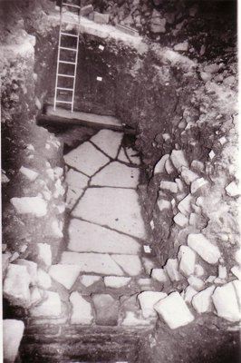 Durante le opere di ristrutturazione dell'edificio sito al civico n. 1 di Piazzetta S. Lucia eseguite nel 1996 sono stati condotti saggi geoarcheologici che hanno interessato i principali ambienti del pianterreno, in precedenza occupati da due esercizi commerciali. Le indagini hanno riportato alla luce strutture murarie messe in relazione con analoghi resti rinvenuti nella stessa Piazzetta S. Lucia e in via Ss. Martiri agli inizi del '900 e nel corso anni 70, nonché con le testimonianze archeologiche scoperte nel 1995 nell'ambito degli scavi realizzati all'interno di Palazzo Vicco (Curia Vescovile). L'analisi comparata dei manufatti ha consentito di ricondurre le strutture emerse dagli strati meno profondi a complessi trecenteschi, forse identificabili con l'ospizio e la chiesetta dell'Annunciata. Sotto il vano sinistro dell'edificio (Ex Ristorante Parangal) è stato inoltre individuato un muro in grossi conci di arenaria, sbozzati grossolanamente e legati con malta, interpretato come muro perimetrale di un'area cimiteriale datata al tardo medioevo, in parte distrutta dagli scavi per la rete fognaria realizzati negli anni settanta; entro il perimetro indagato sono state riconosciute quattro tombe. A una fase di frequentazione assai più antica è stata attribuita una struttura muraria, comune ai vani di entrambi gli ex-locali commerciali, la cui base è risultata insistere sulla crepidine di una strada di epoca romana. Il tratto di percorso stradale, portato alla luce in ottimo stato di conservazione, risulta pavimentato in lastre di arenaria irregolari e presenta una larghezza di 3,60m. Oltre alla crepidine meridionale, in corrispondenza del margine settentrionale del vano sinistrof è stata riconosciuta la crepidine opposta e un muro realizzato a margine della medesima. La diversa tecnica edilizia riscontrata nei manufatti posti ai lati del percorso ha permesso di distinguere strutture murarie di mero contenimento da altre riconducibili a edifici abitativi collocati in affaccio alla strada. In modo particolare, la raffinata composizione delle murature lato monte (conci squadrati legati con abbondante malta), insieme all'individuazione nel vano destro (Ex Pizzeria Antica mormorazione) di una falda di scarico ricca di malte, intonaci con decorazioni a girali e resti di contenitori ceramici per il trasporto e la conservazione delle derrate alimentari, hanno consentito di intuire la presenza di edifici signorili con annessi produttivi; l'epoca di dismissione, in base ai materiali rinvenuti, è stata datata al IV-V secolo d.C.