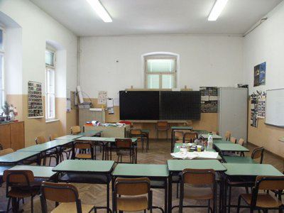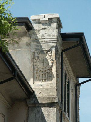 STEMMA (esterno) A decorazione di una parasta d'angolo della facciata principale, stemma alabardato su scudo tondo decorato da motivi floreali, rifinito ad intonaco. LAPIDE (esterno) Lapide marmorea posizionata sotto al portico dell'ingresso principale, riportante la dicitura "ARA DI PACE TRA LA CITTA' E IL CONTADO QVESTA SCUOLA DIFESI PER TRE LVSTRI I CONCVLCATI DIRITTI, IL 5 GENNAIO MCMXXI, GIORNO DELL'ANNESSIONE LIBERA EFFONDE IL SVO INNO ALLA GRANDEZZA D'ITALIA" ELEMENTO ORNAMENTALE (esterno) Sopra la lapide presso l'ingresso principale, tondo in pietra bianca raffigurante il profilo di Dante Alighieri. ISCRIZIONE (esterno) Un'iscrizione ad intonaco in corrispondenza della facciata ovest riporta la dicitura "SCVOLA ELEMENTARE ATTILIO GREGO" LAPIDE (interno) Nell'atrio di ingresso, alla base della scala principale, una lapide in marmo scuro riporta a lettere dorate la seguente dicitura: "ATTILIO GREGO, DAL CUI NOME HA VANTO QUESTA SCUOLA TRE FERITE E QUATTRO MEDAGLIE AL VALORE CONSACRANO ALLA STORIA DELLA NOSTRA REDENZIONE, XXIII-I-MCMXXX, TRIESTE ANNO VIII"