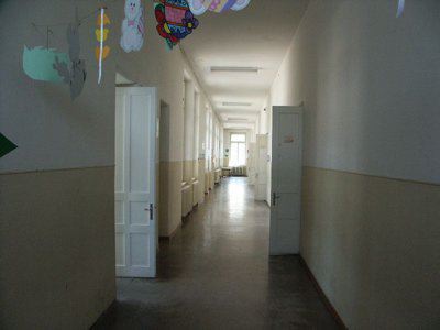 Lungo la Strada di Guardiella un muro in conci squadrati a corsi orizzontali di pietra arenaria , della stessa altezza del basamento dell'edificio, funge da contenimento del terreno adibito a giardino. Un marcapiano modanato in pietra bianca bulinata definisce il livello del piano di calpestio del piano terra. Un basamento in conci squadrati di pietra arenaria a corsi orizzontali corre lungo l'intero perimetro del fabbricato a protezione della porzione bassa delle facciate. Le restanti parti di facciata risultano intonacate in colore rosa chiaro, con l'interruzione di un marcapiano in pietra bianca posto al livello del davanzale delle finestre del secondo piano. Lesene ad intonaco grigio scandiscono verticalmente i ritmi della facciata e rafforzano gli angoli del fabbricato; il coronamento è costituito da un marcapiano modanato e da una linda aggettante finita ad intonaco. Gronde e pluviali sono in lamiera verniciata. I fori architettonici sono contornati da cornici in pietra bianca bulinata, con architrave modanato con gocciolatoio e piccole mensole in pietra. Un piccolo portico posto in corrispondenza di una rientranza dal filo di facciata sul prospetto ovest, protegge l'ingresso principale. Due pilastri e una trabeazione in pietra bianca incorniciano i varchi di accesso al portico, richiamando geometrie tipiche dello stile liberty. Un balcone di pertinenza dell'appartamento del custode sovrasta l'ingresso, con un parapetto in ferro battuto decorato. I serramenti vetrati di finestra, quasi tutti originali, sono doppi in legno massello verniciato, a doppia anta a quattro specchiature e sopraluce vetrato. Le porte di accesso sono in legno massello verniciato a doppia anta con specchiature vetrate protette da inferriate in ferro battuto. Gli infissi interni sono costituiti da porte in legno verniciato color crema a doppia anta con specchiature piane. I pavimenti degli spazi comuni sono costituiti da un battuto di cemento e graniglia. Le aule sono pavimentate in parquet disposto a spina di pesce. I paramenti murari interni sono rifiniti ad intonaco bianco con abbassamento in smalto murale colore beige. Le scale di accesso ai livelli superiori e la breve scala di raccordo tra i due corpi edilizi sono costituire da blocchi di pietra calcarea bulinata e parapetti in ferro verniciato con corrimano ligneo. I pianerottoli di interpiano sono pavimentati con piastrelline colorate esagonali in cotto.