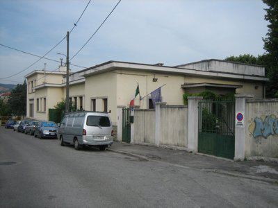 Edificio collocato nel rione di Servola di forma rettangolare, composto da diversi corpi a uno o due livelli fuori terra. Posizionato parallelamente all'asse stradale di via del Pane Bianco, è delimitato da un muro di confine con pilastri a sezione quadrata in cemento intonacato; un cancello in ferro verniciato di verde permette l'accesso al complesso scolastico. L'affaccio principale è posto sulla strada, quelli laterali sono rivolti verso la corte interna, dove si trova il giardino della scuola. La struttura portante verticale è in pilastri di cemento armato con muratura di tamponamento in laterizio; quella orizzontale presenta solai in laterocemento. La copertura è piana con rivestimento bituminoso. I pluviali sono interni alla muratura e la gronda è alloggiata nel cordolo aggettante di copertura. Le facciate sono omogenee, prive di elementi decorativi e con un rivestimento in intonaco liscio di colore ocra. Le aperture sono distribuite in modo regolare e non presentano cornici ad esclusione di alcuni elementi in pietra artificiale sul prospetto principale. L'ingresso principale è posto sul lato corto ed è costituito da una piccola loggia con aperture ad arco, copertura piana e cordolo aggettante. L'interno dell'edificio è distribuito regolarmente con un vano scale laterale composto da due rampe in pietra. Le stanze presentano un pavimento in parquet con tessitura a spina pesce e in linoleum negli ambienti recentemente oggetto di intervento; le pareti sono intonacate.