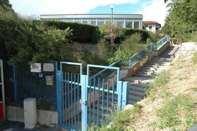 L'edificio sorge nel quartiere di Chiadino su lotto di pertinenza recintato a mezzo di inferriate metalliche verniciate tipo orsogrill. La pianta è a forma irregolare distribuita su un alzato di due livelli. Il piano terra è aperto sul prospetto di Via Dei Mille in corrispondenza di un ingresso secondario, l'accesso principale è collocato invece sul retro del fabbricato all'altezza del primo piano. La struttura edilizia è in cemento armato e latero cemento. La superficie delle facciate, con basamento rifinito ad intonaco grezzo, è rivestita da pannelli sandwich con superficie esterna in materiale plastico colorato; le finestre vetrate presentano telaio in alluminio. La copertura è piana, con rivestimento in guaina bituminosa.