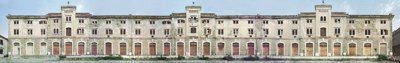 La struttura si compone di due piani fuori terra e una soffitta. Il prospetto verso il mare è caratterizzata da tre corpi aggettanti, uno centrale e due alle estremità, uniti da una pensilina e da un ballatoio disposti rispettivamente al piano terra e al piano superiore. La facciata interna è preceduta da una banchina con gradini e rampe utilizzate per lo spostamento delle merci. Il prospetto presenta un pianoterra articolato in una serie di aperture ad arco a tutto sesto, con cornice in chiave di volta, affiancate da pensiline in struttura metallica. I piani superiori sono caratterizzati da finestre binate di forma rettangolare, arricchite da cornice in calcare. I fori finestra dell'ultimo piano si presentano di dimensioni minori. La superficie orizzontale della facciata è ritmata da tre avancorpi inseriti entro lesene a bugnato, e arricchiti da archetti ciechi. La pianta dell'edificio è ripartita da colonne e pilastri e alcuni muri di spina; corridoi passanti si trovano tra il lato verso il mare e quello interno. Le scale principali sono collocate al centro della struttura.