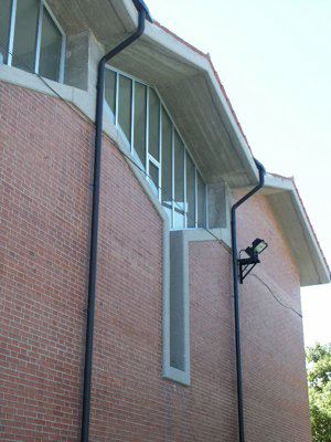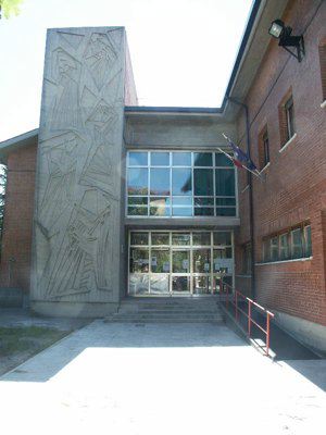 Edificio situato all'interno dell'abitato di Prosecco. Fa parte di un complesso edilizio posto all'interno di un lotto definito e delimitato da un recinto con ampio giardino, un parcheggio retrostante e un piazzale utilizzato per le attività sportive. Sviluppo planimetrico con forma ad "U" composto da un corpo centrale su due livelli fuori terra e da due ali laterali su un livello. Struttura portante in cemento armato con solai in laterocemento. I prospetti esterni presentano un basamento in cemento e un rivestimento superficiale in mattoni faccia a vista. Aperture distribuite in modo regolare. finestre dei corpi laterali di forma rettangolare e a nastro con doppia anta, infisso e avvolgibile in legno. finestre del corpo principale con forma particolare che segue l'inclinazione delle falde di copertura e telaio in alluminio anodizzato composto da nove elementi rettangolari a sviluppo verticale con apertura centrale. Gli ingressi principali si aprono sui corpi laterali dell'edificio e presentano un'ampia vetratura modulare con telaio in alluminio. In prossimità è situato un elemento in cemento sporgente rispetto alla facciata e decorato sulla superficie con bassorilievi a motivi geometrici. Copertura a spioventi con rivestimento in coppi curvi rossi. Le grondaie e i pluviali, esterni rispetto alla muratura, sono in lamiera verniciata.