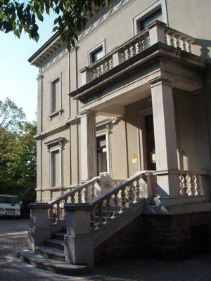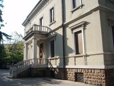 Il manufatto denominato "Villa Prinz", che ospita la III Circoscrizione comunale e l'Istituto Regionale per la Storia del Movimento di liberazione nel Friuli Venezia Giulia, sorge all'interno di un complesso di scuole statali con relativi fabbricati accessori. Tale lotto è delimitato a monte da Salita di Gretta. L'accesso all'area avviene attraverso un cancello metallico, ricavato all'interno del muro di cinta e posto ad una quota inferiore rispetto all'asse stradale. All'interno del giardino alberato il manufatto è preceduto da una serie di gradoni con pavimentazione a tasselli ondulati. Il fabbricato presenta una pianta regolare rettangolare e si eleva per tre piani, uno dei quali seminterrato. La struttura portante è in muratura e la copertura è inclinata a due falde con rivestimento in coppi. I fronti dell'edificio presentano la medesima logica compositiva e gli stessi elementi decorativi. La facciata posteriore è collocata ad una quota leggermente inferiore rispetto a quella dell'ingresso, pertanto vi è una scala esterna in pietra che raccorda i due terrazzamenti.
