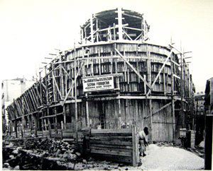 Così esordiva, nel gennaio 1935, la Rivista Mensile della città di Trieste: "Vecchissima aspirazione quella dei Mercati coperti, a Trieste, non tanto per ragioni di igiene e salubrità pubblica quanto per ragioni climatiche. Ogni anno l'opinione pubblica si avvedeva che i Mercati all'aperto nella stagione invernale erano un guaio, che ogni precipitazione di pioggia era dannosa, che il vento, sollevando la polvere della strada, incipriava frutta e verdure di sostanze non sempre innocue, senza contare il disagio dei venditori e quello del pubblico affluente ai mercati stessi". La realizzazione di un Mercato rionale coperto risolveva così un annoso e delicato problema di salute ed igiene pubblica. La vasta area prospiciente l'antica via del Torrente, che dal 4 novembre 1918 prese il nome di via Carducci, venutasi a creare in seguito alle demolizioni dei vecchi fabbricati lì esistenti, fu destinata, quindi, alla creazione del nuovo fabbricato. L'edificio, progettato nel 1935 dall'arch. Camillo Iona, allora tecnico dell'Ufficio Lavori Pubblici del Comune, si indirizzò subito verso un'ampia struttura, moderna e funzionale, capace di ospitare più di 300 banchi di vendita. Descritto come interessante esempio di "architettura funzionalista", il Mercato coperto si inseriva all'interno di una politica urbanistica di regime, volta alla realizzazione di importanti opere cittadine. Nonostante l'iniziale perplessità derivata, non solo dallo svuotamento che si sarebbe venuto a creare nelle piazze destinate solitamente ai mercati, ma anche dalla prevista riduzione di clienti dovuta all'ubicazione meno centrale della struttura, il podestà Salem ne decretò l'immediata costruzione. Due i livelli: uno, al pianterreno rialzato, destinato ad accogliere i venditori di frutta e verdura che fino ad allora erano stati ubicati in piazza Goldoni e Garibaldi ed una galleria superiore, raggiungibile attraverso una rampa elicoidale e due rampe di scale, per la vendita di fiori e merci stagionali. La struttura che ne derivò, semplice ed essenziale, in stile Novecento, trovò, nella singolare forma tondeggiante, nella caratteristica torre dell'orologio, negli ampi spazi interni e nelle grandiose vetrate a nastro, la propria funzionalità ed utilità. L'essenzialità delle linee e l'utilizzo di materiali sperimentali (calcestruzzo, vetro-cemento e nuovi materiali compositi) resero subito innovativo ed esplicito il progetto. L'ottimo sistema di illuminazione naturale, la ventilazione, l'isolamento termico, il particolare rivestimento delle pareti (lavabili e di colore azzurro per evitare il problema delle mosche), resero la costruzione il risultato di altrettante esperienze internazionali in questo settore. Così la sua descrizione: "l'edificio ospita un mercato coperto ed occupa un vasto lotto triangolare, ad isola, di un'area del centro storico, parzialmente demolita agli inizi degli anni Trenta. La fabbrica si eleva di 3 piani fuori terra; l'angolo risolto con una scala ellittica che sale a spirale, leggibile dalle finestre a nastro intelaiate in ferro, è più alto e termina con la torre dell'orologio. Ampie superfici vetrate definiscono gli alti prospetti. La struttura portante è costituita pilastratura in cemento armato e laterizio; la copertura è piana. I prospetti sono finiti con intonaco liscio". I lavori, iniziati il 14 ottobre, si conclusero dodici mesi dopo con un piccolo ritardo sui tempi iniziali, stimati attorno ai dieci mesi. Il collaudo delle opere in cemento armato fu effettuato meno di anno più tardi: il 7 ottobre 1936. Inaugurato il 28 ottobre 1936 alla presenza del Duca Amedeo d'Aosta, del Prefetto, del Podestà e delle massime autorità cittadine, l'edificio, costato al Comune circa due milioni di lire, fu ufficialmente aperto al pubblico il 16 novembre dello stesso anno.