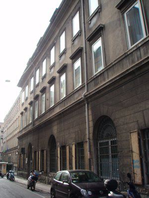 Il 30 agosto 1853, con il numero di decreto 12312, il Magistrato Civico approvava un progetto per l'erezione di un fabbricato prospiciente l'allora Contrada Dobler. La via, prendeva il nome dalla presenza in quella zona di uno stabile, risalente al 1802, con annesso terreno destinato a caserma e chiamato appunto Dobler dal nome del suo primo proprietario. Tale fondo, che un tempo serviva per gli esercizi militari, fu acquistato dal Comune nel 1808 e destinato ad uso scolastico. All'inizio del XX secolo la contrada cambiò denominazione, venendo intitolata al pittore triestino nato nel 1830. Il piano del caseggiato, molto semplice nelle sue fattezze si ergeva per due soli piani e recava la firma di Giorgio e Domenico Righetti. Nel 1875 la casa fu rimaneggiata da Domenico che, commissionato dall'allora proprietario dello stabile, il cav. Anastasio Vardacca, modificò in maniera sostanziale la struttura interna, aggiungendo un balconcino in ghisa al piano nobile. Nel 1912 si pensò di alzare di ben tre livelli l'intero edificio. I progetti di abbellimento dello stabile al N.Tav. 1540, ad opera dell'arch. Carlo Bonetti, non vennero però mai realizzati, probabilmente per questioni di carattere economico, si preferì quindi lasciare la facciata nella sua originaria e semplice linearità. Nel 1913 i locali, siti al primo e secondo piano, furono adattati e destinati ad ospitare un istituto scolastico.