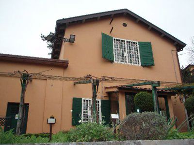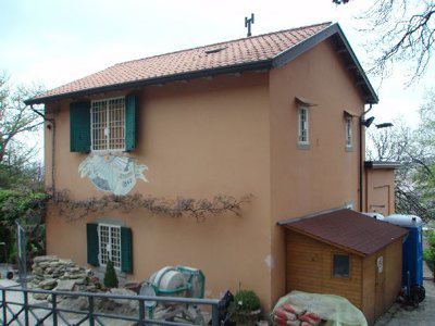L'edificio principale a due piani presenta una finitura delle facciate ad intonaco di colore arancione chiaro, con prospetti compositivamente omogenei. Le aperture sono tamponate da serramenti ad anta di colore bianco, completati da oscuranti verniciati di verde, griglie metalliche bianche e da cornici lapidee. Alcuni fori sono caratterizzati da davanzali in pietra e tettucci intonacati della stessa tonalità dei fronti. L'ingresso è sottolineato da una bussola con copertura inclinata e serramenti metallici sagomati di colore verde; la struttura è collegata ad un pergolato ligneo, sempre tinteggiato di verde. Il tetto è a falde con manto di rivestimento in coppi e mensole lapidee in corrispondenza del livello sottogronda; un sistema di grondaie e pluviali in lamiera consente lo smaltimento delle acque meteoriche. La facciata parallela all'ingresso è decorata con una meridiana dipinta nel mezzo. La costruzione secondaria è realizzata in muratura a vista con mattoni rossi sovrapposti; la copertura è a falde con manto di rivestimento in coppi e grondaie in lamiera. I serramenti sono sempre di colore verde con oscuranti, mentre le portefinestre che consentono l'accesso sono dotate di un sopraluce vetrato. A fianco sorge un locale accessorio in legno, con struttura lignea costituita da assi sovrapposte e copertura inclinata; gli infissi sono lignei non tinteggiati. Le serre presentano dei fronti rifiniti ad intonaco di colore giallo scuro, mentre le ampie zone vetrate e le coperture inclinate sono state realizzate in metallo e vetro.