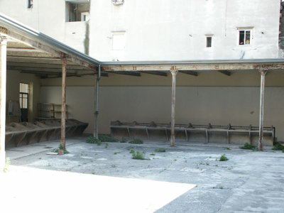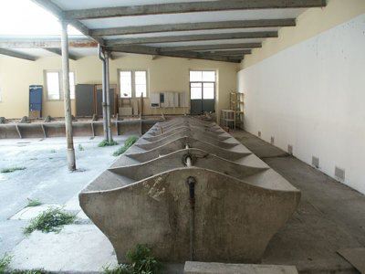 Il fabbricato monopiano disposto a "L" è costituito principalmente da una tettoia a struttura metallica delimitata sul lato strada da una facciata in muratura che si posiziona in continuità con i fabbricati attigui. Un piccolo corpo di fabbrica, nei pressi dell'ingresso ad una delle estremità del lotto ospita i pochi spazi chiusi necessari alla gestione della struttura ora abbandonata. Lo spazio racchiuso tra la struttura della tettoia e il muro del fabbricato esistente sul lotto limitrofo lungo il lato est, costituisce il cortile di pertinenza dell'antico lavatoio.