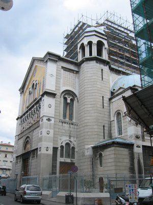 L'immobile sorge sul sito in origine occupato dalla chiesa settecentesca, dedicata a San Spiridione e alla Santissima Trinità, di proprietà della Confraternita Greca-Illirica, autorizzata con decreto del 1751 da Maria Teresa alla costruzione di un proprio tempo. Con la divisione nel 1781 della comunità in due gruppi si distinguono due sedi di culto: la chiesa di San Nicolò per i greci e la chiesa di San Spiridione per la componente serbo-ortodossa. Nel 1861 il tempio di San Spiridione viene demolito in seguito ai lavori di interramento delle saline nell'omonimo Borgo. Già nel 1858 la comunità serbo-ortodossa bandisce un pubblico concorso per la presentazione di un progetto per la nuova chiesa, la cui scelta è affidata all'Accademia delle Belle Arti di Venezia. Tra i sette disegni proposti viene scelto quello dell'architetto Carlo Maciacchini (1818-1899), mentre la direzione dei lavori viene affidata all'ingegnere triestino Pietro Palese (1812-1898). Conclusi i lavori di edificazione nel 1868, il tempio viene benedetto il giorno 20 settembre 1869 dall'archimandrita German Angelic in rappresentanza del patriarca Samuilo Masirevic. Solo nel 1885 viene completata la decorazione musiva da parte della ditta veneziana Murano sulla base dei disegni del pittore milanese Pompeo Bertini; le rimanenti parti decorative vengono realizzate dal milanese Antonio Caremmi. Nel primo progetto l'architetto Maciacchini elabora la facciata principale con l'ingresso su Via San Spiridione, non rispettando le indicazioni della "Patente di Tolleranza" concepita da Maria Teresa nel 1751 e basata sul divieto di aprire il pubblico accesso sulla strada principale per i culti non cattolici; con approvazione dell'agosto 1860 viene concessa la deroga e approvato il disegno originario. L'architetto lombardo, vincitore del concorso per il Cimitero Monumentale di Milano e socio onorario della Reale Accademia di Belle Arti di Brera, concepisce una struttura "in istile bizantino-orientale ed è formata in una croce greca nella sua parte icnografica, avente sugli angoli 4 campanili, che servono a sostegno della gran cupola centrica" (Generini, 1968, p. 320). La decorazione interna raffigura scene cristologiche e immagini relative alla vita del santo titolare della chiesa, che sono riprese anche nella facciata esterna dove sono affiancate da figure di santi scolpite da Emilio Bisi. Lo spazio interno è arricchito da esempi preziosi di suppellettile ecclesiastica, in parte commissionati per la chiesa stessa, in parte donati da illustri personaggi legati alla comunità; all'interno del gruppo si segnalano le diverse icone, quale la "Madonna Hodigitria con angeli", l'altare con paliotto di brozo, quattro candelieri donati da Giovanni Prelog, il dipinto ottocentesco della Crocifissione con argento e pietre preziose e una coppia di piatti d'altare di bottega veneta del XVIII secolo. Il tempio è stato interessato da numerosi interventi di restauro, tra cui nel 1917 la rimozione delle coperture in rame delle cupole. Attualmente si sta completando la fase di pulitura delle superfici esterne.