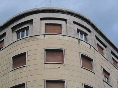 La struttura presenta una pianta di forma trapezoidale ed è composta da due corpi di fabbrica ad L disposti in modo da creare un'ampia corte interna. L'angolo riservato all'ingresso monumentale è caratterizzato da una soluzione curva. Le facciate sono rivestite in pietra e caratterizzate da un gioco di linee orizzontali parallele che moderano la percezione di verticalità data dai sette piani della costruzione.