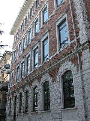 L'edificio costituisce una testimonianza di particolare interesse quale importante esempio di architettura eclettica. Presente una planimetria definita da un corpo centrale e due ali laterali che delimitano un ampio cortile sul retro. Le facciate sono caratterizzate da mattoni a vista che contrastano con la pietra bianca del basamento, delle cornici delle finestre e dei profili angolari.