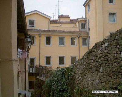 L'edificio prospetta l'androna degli Orti, una denominazione che risale alla fine del Settecento e indicava un viottolo cieco posto a ridosso delle antiche mura cittadine. L'immobile è completamente addossato, nel suo lato posteriore, ad un insieme di stabili settecenteschi le cui facciate prospettano piazza Brabacan e via del Trionfo. Presenta un impianto planimetrico irregolare, in quanto la costruzione si inserisce fra edifici preesistenti e segue l'andamento leggermente incurvato della parte iniziale dell'androna. In alzato si sviluppa per cinque piani fuori terra e un seminterrato. Nel 1828 venne indicato come casa e campagna Scarpa nella documentazione dell'Ispezione delle Civiche Fabbriche. Nel 1999 il fabbricato, che versava in stato di grave degrado, è stato oggetto di un intervento di restauro che lo a reso adeguato ad ospitare una struttura dell'azienda sanitaria. L'edificio con annesso orto, la cui pertinenza all'immobile è testimoniata sin dal 1825, è dichiarato di interesse culturale limitatamente al sedime, ai volumi , alle altezze e ai prospetti.