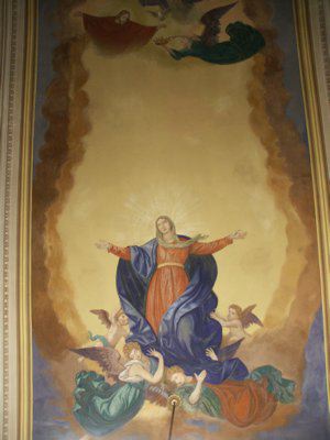 EPIGRAFE (esterno) Sopra il portale un'epigrafe in pietra datata 1634 è posta a memoria del vescovo Coronini. STATUE (esterno) Due figure in pietra bianca poste all'interno di nicchie che fiancheggiano l'ingresso della chiesa raffigurano F. Baraga e A. M. Slomþek. AFFRESCHI (interno) Decorazioni a fresco decorano la volta della navata, dove è raffigurata l'Assunzione e la crociera dell'abside, dove sono raffigurati i busti degli evangelisti.