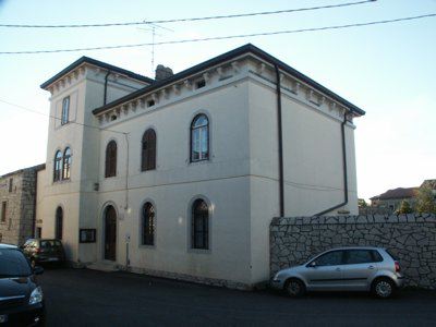 Le facciate sono trattate ad intonaco liscio color rosa sui quattro lati. Sul fronte principale un bassissimo battipiede in pietra calcarea protegge l'attacco a terra dell'edificio da danneggiamenti accidentali. Un alto marcapiano quadro di colore uguale a quello della facciata separa le finestre del piano terra da quelle del primo piano. Il coronamento è costituito da un marcapiano quadro in pietra e una serie di fitte mensole a voluta poste a sostegno della banchina e interrotte regolarmente da fori rettangolari di aerazione del sottotetto. Sul fronte principale, tutti i fori architettonici sono archivoltati, provvisti di cornice in pietra calcara, con serramenti vetrati lignei verniciati bianchi a doppia anta a quattro specchiature con sopraluce e serramenti oscuranti esterni verniciati color testa di moro. Spiccano sull'avancorpo a tre livelli una bifora al primo piano e un foro rettangolare al piano secondo, affiancato da altri due tamponati. Sul prospetto ovest i fori architettonici rettangolari con serramenti vetrati lignei doppi, a doppia anta a sei specchiature, sono protetti da oscuranti esterni verniciati color testa di moro. Grondo e pluviali sono in metallo verniciato color testa di moro e scendono esternamente lungo le facciate laterali. Il manto di copertura è in coppi curvi rossi "uso Trieste". Internamente rifinito ad intonaco con abbassamento a smalto, presenta pavimentazioni varie dal tavolato grezzo, alle marmette di cemento e graniglia, fino alla pavimentazione in pietra calcarea bocciardata.