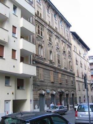I progetti di costruzione dell'elegante edificio risalgono all'inizio del XX secolo. Il 5 febbraio 1906 il Magistrato Civico, con decreto n. 6716/06 accordava all'ing. Mario Pagliara il permesso di erigere un fabbricato di 5 piani in Via Donatello 8, sul fondo N. Tav. 1372 di Guardiella di proprietà dei signori Antonio Lorandi, Giorgio Saiblecher e Camillo Zustovich. Al piano terra dell'edificio fu ubicata successivamente una trattoria. Lo stabile, in stile eclettico, si distingue per una certa ricercatezza dei particolari e per le pregevoli decorazioni che imprimono alla facciata un plastico movimento di immagini. Da ammirare soprattutto le teste zoomorfe che spiccano sulle lesene laterali delle finestre dell'ultimo piano e le ringhiere in stile liberty tipiche di tanta architettura triestina del primo Novecento.