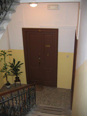 ELEMENTI ORNAMENTALI (esterni): - Targa metallica posta sul lato desto rispetto al portone centrale sopra all'indicazione del civico (Rismondo 040.jpg), dalla datazione non leggibilissima, che riporta la scritta: "ASSICURAZIONI GENERALI - 1831 - TRIESTE". ELEMENTI ORNAMENTALI (interni): - Immagine votiva raffigurante Cristo benedicente (Rismondo 038.jpg), conglobata nell'intonaco della muratura al primo ammezzato del vano scala, con base in legno ed effigie presumibilmente in gesso con finitura colorata.