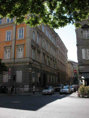 L'edificio, inserito all'interno del Borgo Franceschino il cui si sviluppo si colloca agli inizi dell'Ottocento, venne realizzato a partire dal 1802 in base all'originario progetto dell'architetto Antonio Mollari per volere del negoziante Giovanni Dobler. La casa, individuata al n.29 di Corsi Stadion (attuale Via Battisti), venne acquistata nel 1808 dal Comune di Trieste, dietro pagamento di ottantamila fiorini, per ospitare la Caserma Dobler fino al 1867. Un anno dopo l'amministrazione decise di collocarvi le Civiche Scuole Popolari. Nel 1887, con il passaggio a sede dell'istituenda Triest K.K. Staats Gewerbeschule (Scuola Industriale di Stato), si intervenne sull'edificio, innalzato di un piano, rivisto nella distribuzione interna e modificato in facciata. Nell'ultimo decennio dell'Ottocento venne aggiunto un terzo piano. L'immobile presenta un rivestimento a bugnato al pianoterra, mentre i livelli superiori, ritmati da aperture regolari decorate da elementi lapidei, sono trattati ad intonaco. Nella parte centrale del prospetto su Via Battisti spicca una struttura formata da tre finestre con timpano ed arco a tutto sesto. Attualmente l'edificio è sede della succursale dell'Istituto Tecnico Industriale "A. Volta".