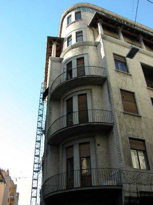 Realizzato su progetto dell'architetto Carlo Bonetti nel 1906 per ospitare numerosi appartamenti abitati dalle illustri famiglie cittadine di inizio secolo, si presenta originale in termini decorativi e di concezione plastica della struttura di chiara ascendenza Liberty, con motivi rintracciabli nella produzione della scuola viennese di Otto Wagner. Le facciate sono movimentate da parti in aggetto, nicchie, e da soluzioni plastiche quali balconi sagomati con ringhiere, serrande avvolgibili e saracinesche a rotolo. La volumetria dell'edificio è alleggerita dalle aperture balconate poste agli angoli. Di particolare rilievo è la decorazione delle facciate svolta attraverso elementi plastici e mosaici colorati con giochi di volute ed intrecci di nastri, fiori e rami. Di interesse inoltre la scala elicoidale interna; è ancora presente al piano attico una stufa in ceramica, ultima testimonianza dell'originale sistema di riscaldamento.
